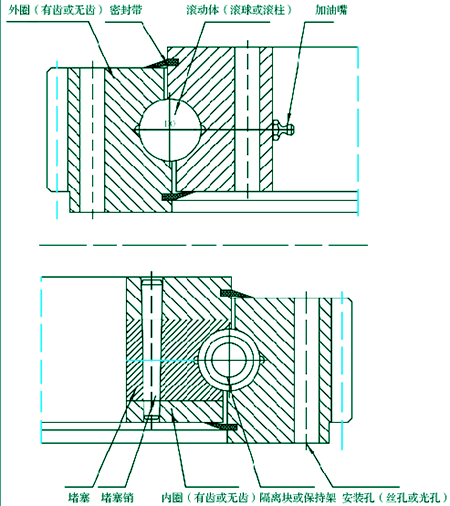 軸承是機械行業中使用非常廣泛零件,說到軸承,就不得不提轉盤軸承,它是一種能夠同時承受較大的軸向負荷、徑向負荷和傾覆力矩等綜合載荷,集支承、旋轉、傳動、固定等多種功能于一身的特殊結構的大型軸承。以下是轉盤軸承結構圖解,供大家閱讀參考。